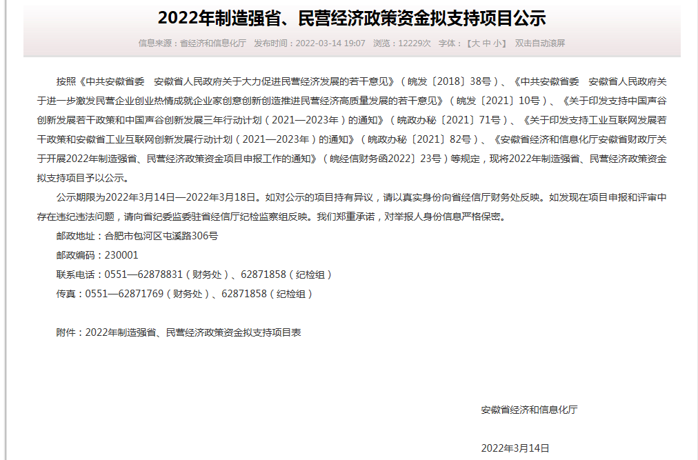 - 熱烈祝賀我公司首臺套設備獲得2022年制造強省、民營經濟政策資金擬支持項目公示
